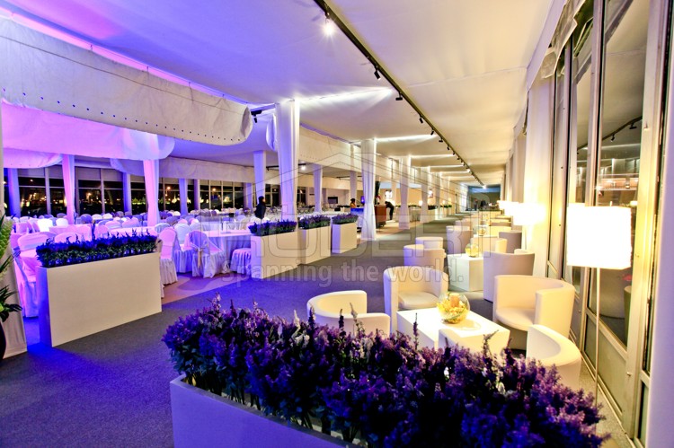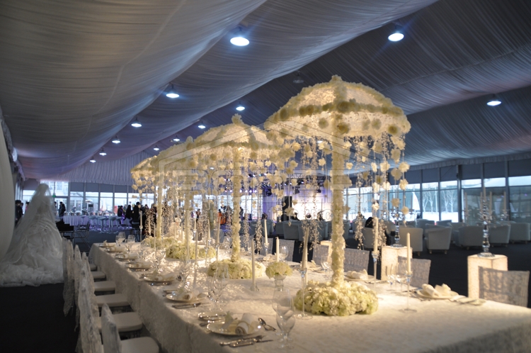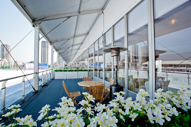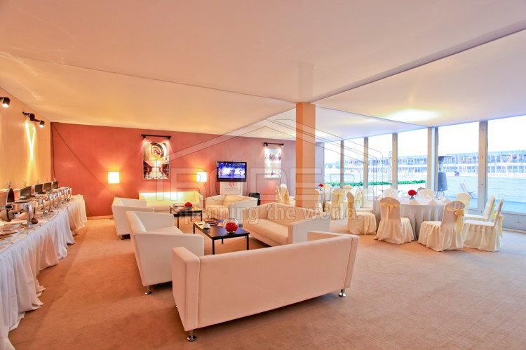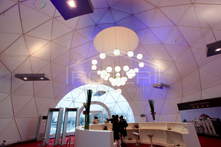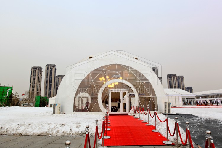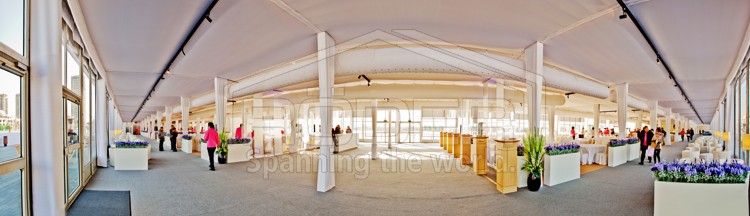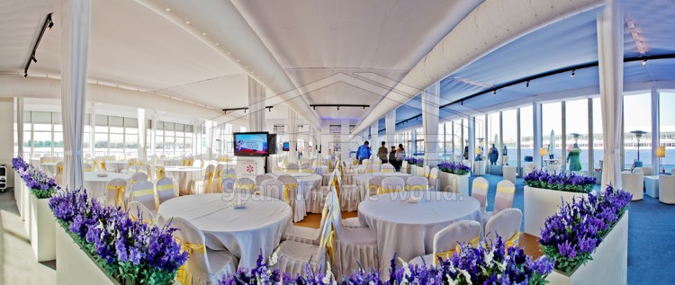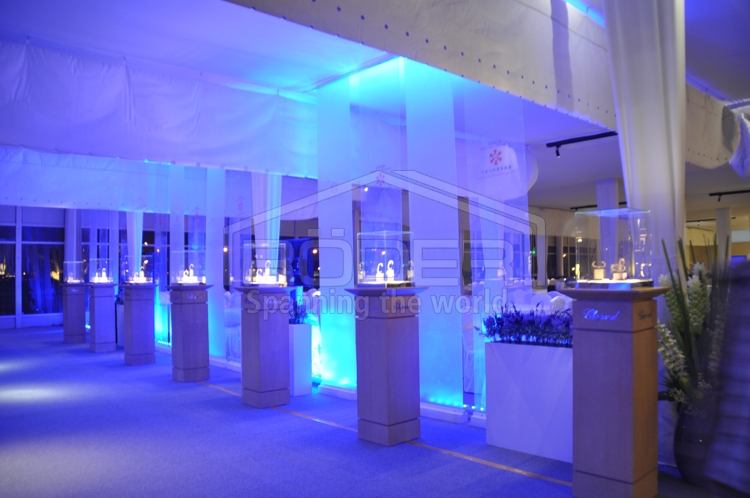 RODER使用兩座雙層結構20X120m篷房,球形篷房,solution平頂篷房,各種篷房等和樓梯,平臺,各類家具,內部裝飾等,為賽事設計和建筑了場地上所有室外建筑和室內活動設施。包括:觀賽席,餐廳,休息室,會議廳VIP室,售票廳,展示廳,媒體接待廳等??偢采w面積12570平方米。