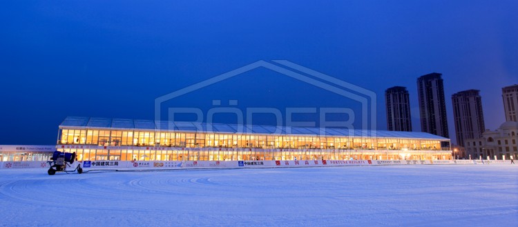 為了配合雪地馬球賽的比賽氛圍,RODER在皚皚白雪的場地上搭建的白色帳篷格外晃眼。RODER的建筑讓這項被稱為“國王運動”的雪地馬球在津城展現出其獨特的魅力。