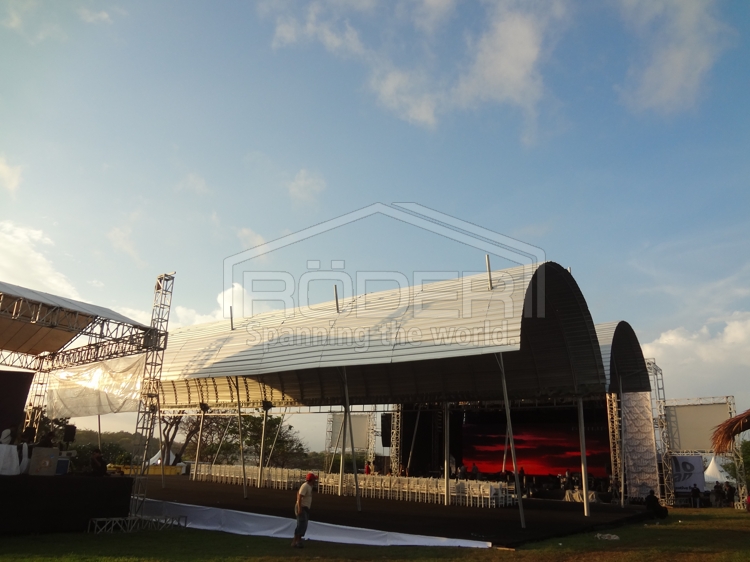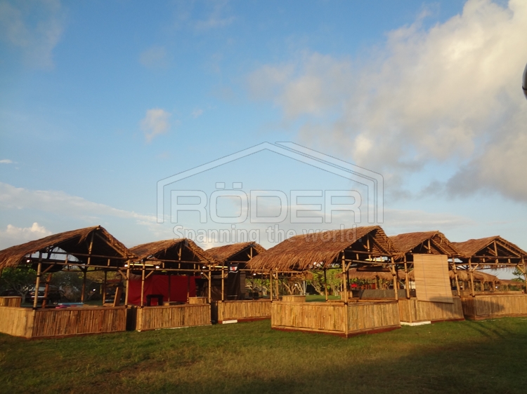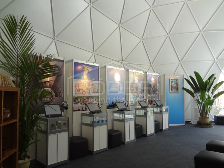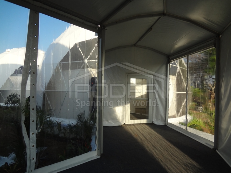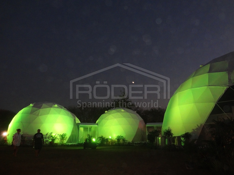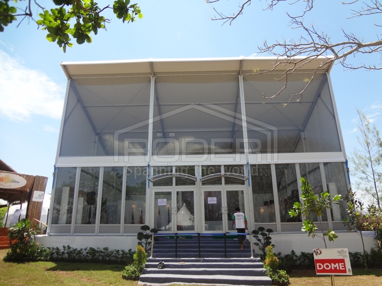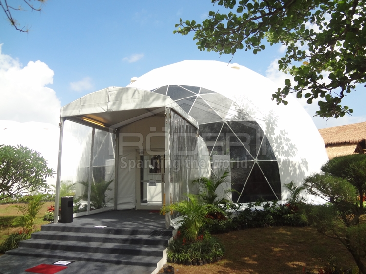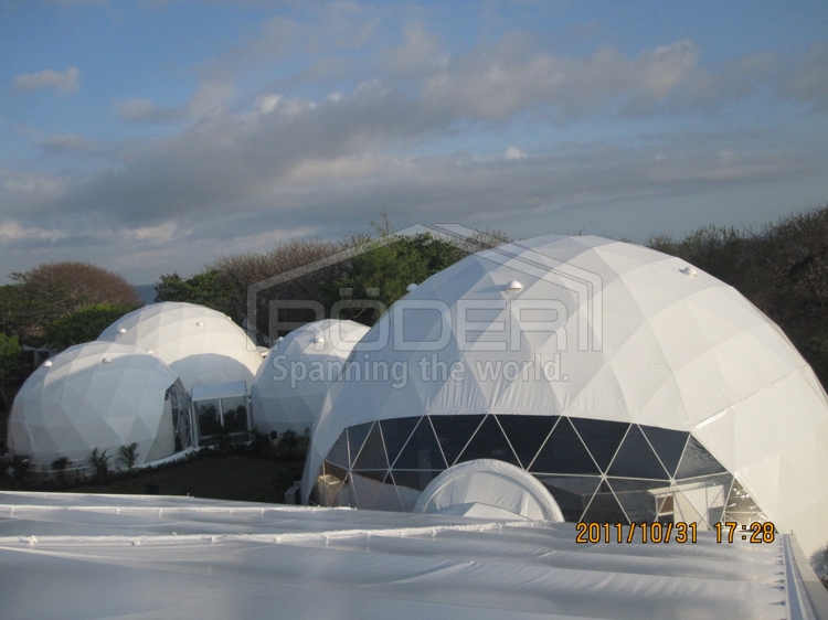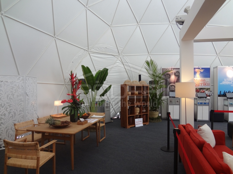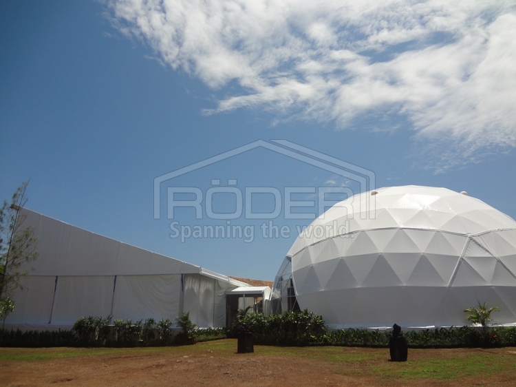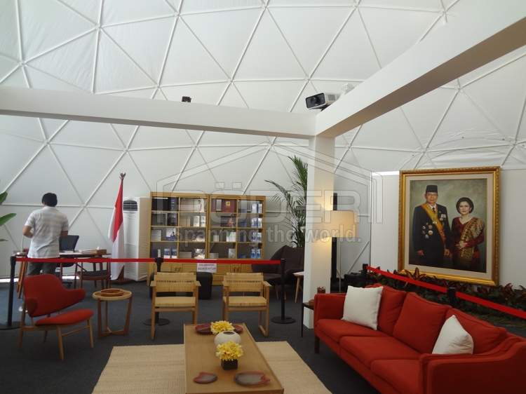 RODER作為本次巴厘東盟博覽會展會臨時場館的指定供應(yīng)商,向大會提供了一座Jetroof 15米x15米篷房,1座 Roder 20米直徑球形篷房,1座 Roder15米球形篷房, 兩座Roder10米球形篷房和四座3x12米過道篷房作為展廳和貴賓通道,內(nèi)部展出了成千上萬種富有當(dāng)?shù)靥厣纳唐泛凸に嚻?。并獲得了博覽會官方的書面表彰。